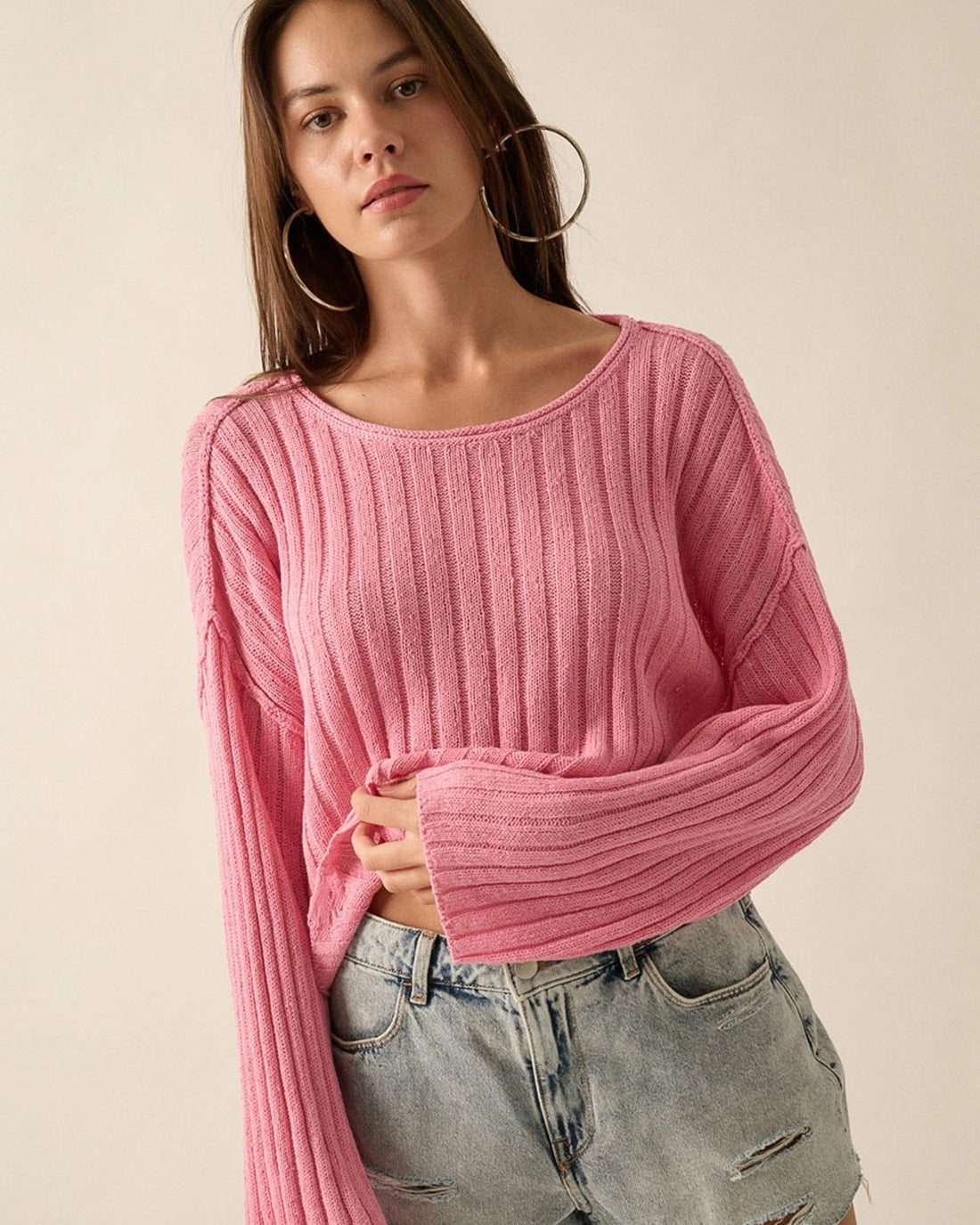 Oversized sleeves, cropped fit and cozy in all the right places. This cream chunky knit...