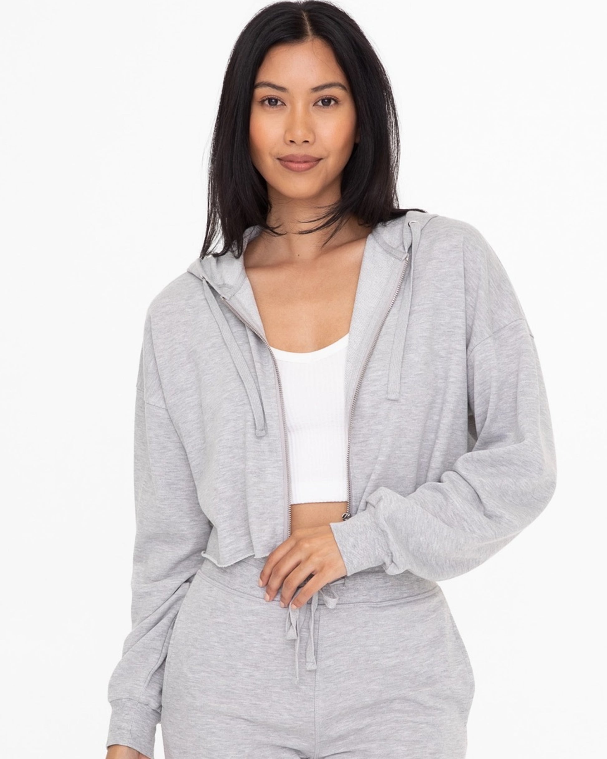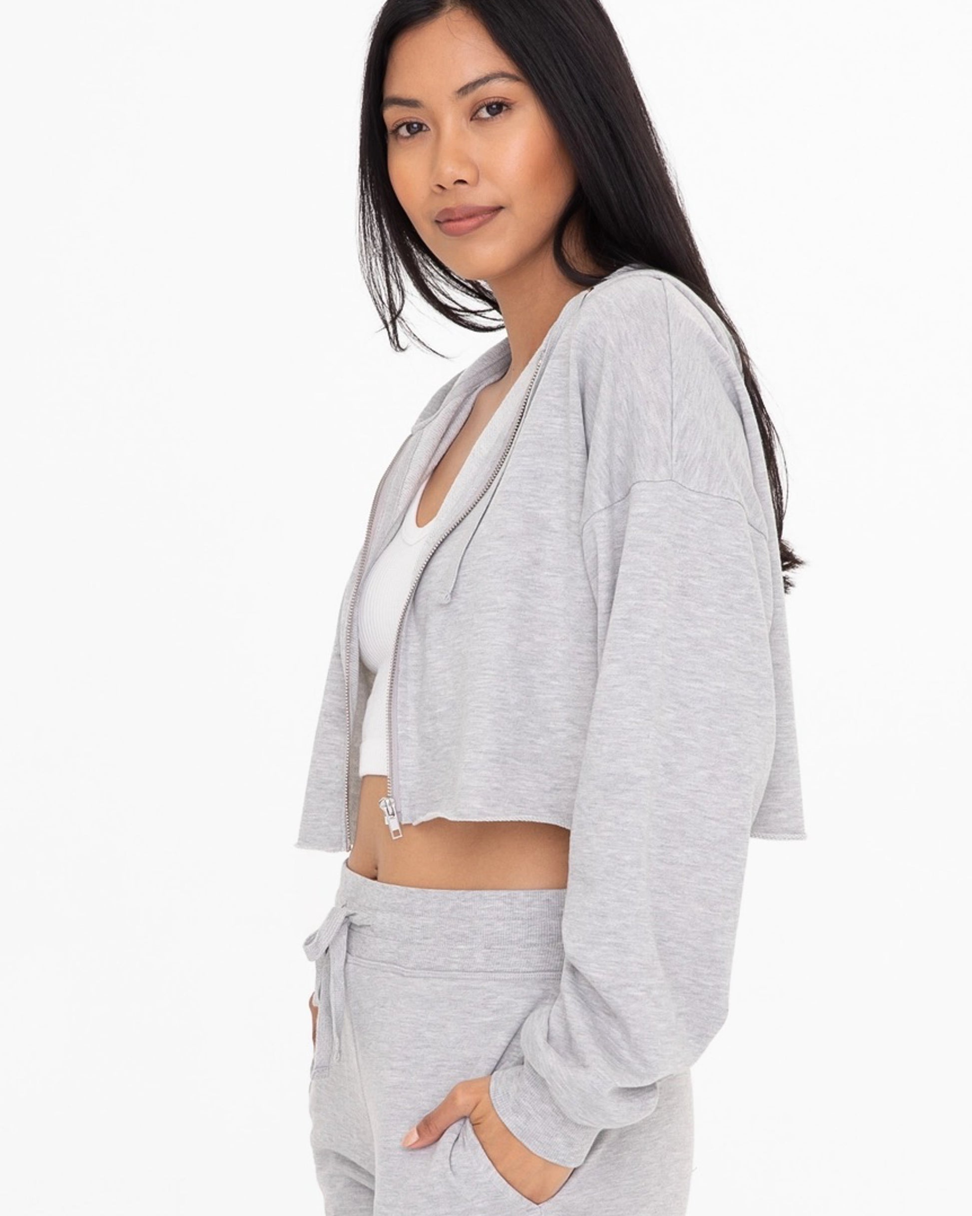 Cropped Zip Up Hoodie | Grey