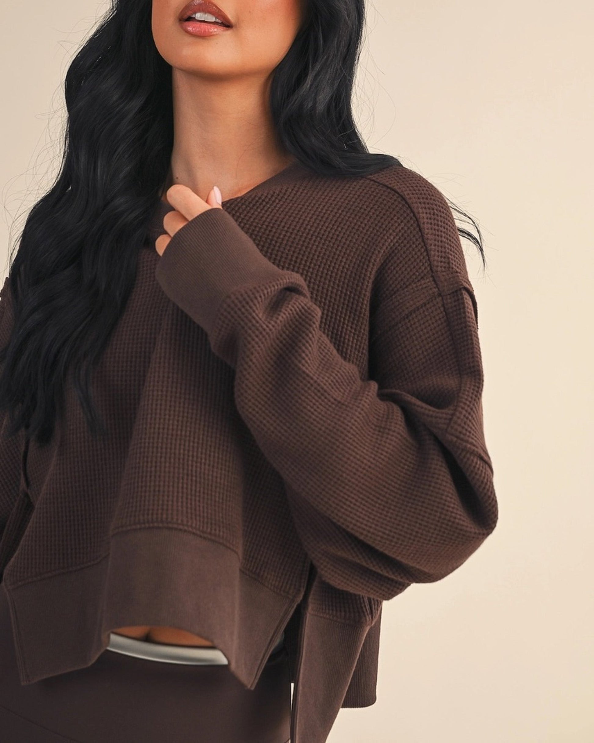 This pullover is soft enough for lounging and easy enough to throw on after a workout. Thanks to it's relaxed, cropped silhouette and high low hem, we promise you'll want this layer in every color.