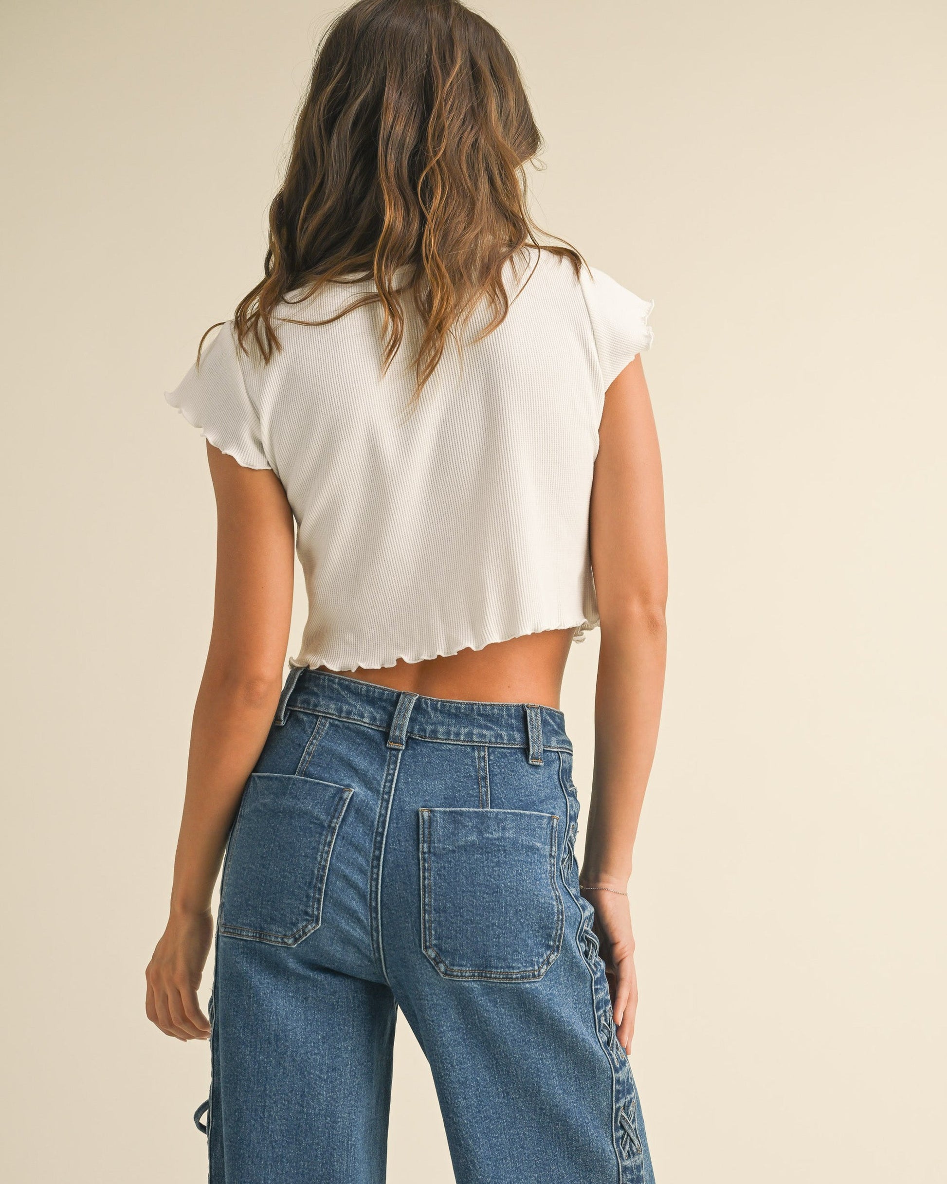 Ruffle Ribbed Tee | White