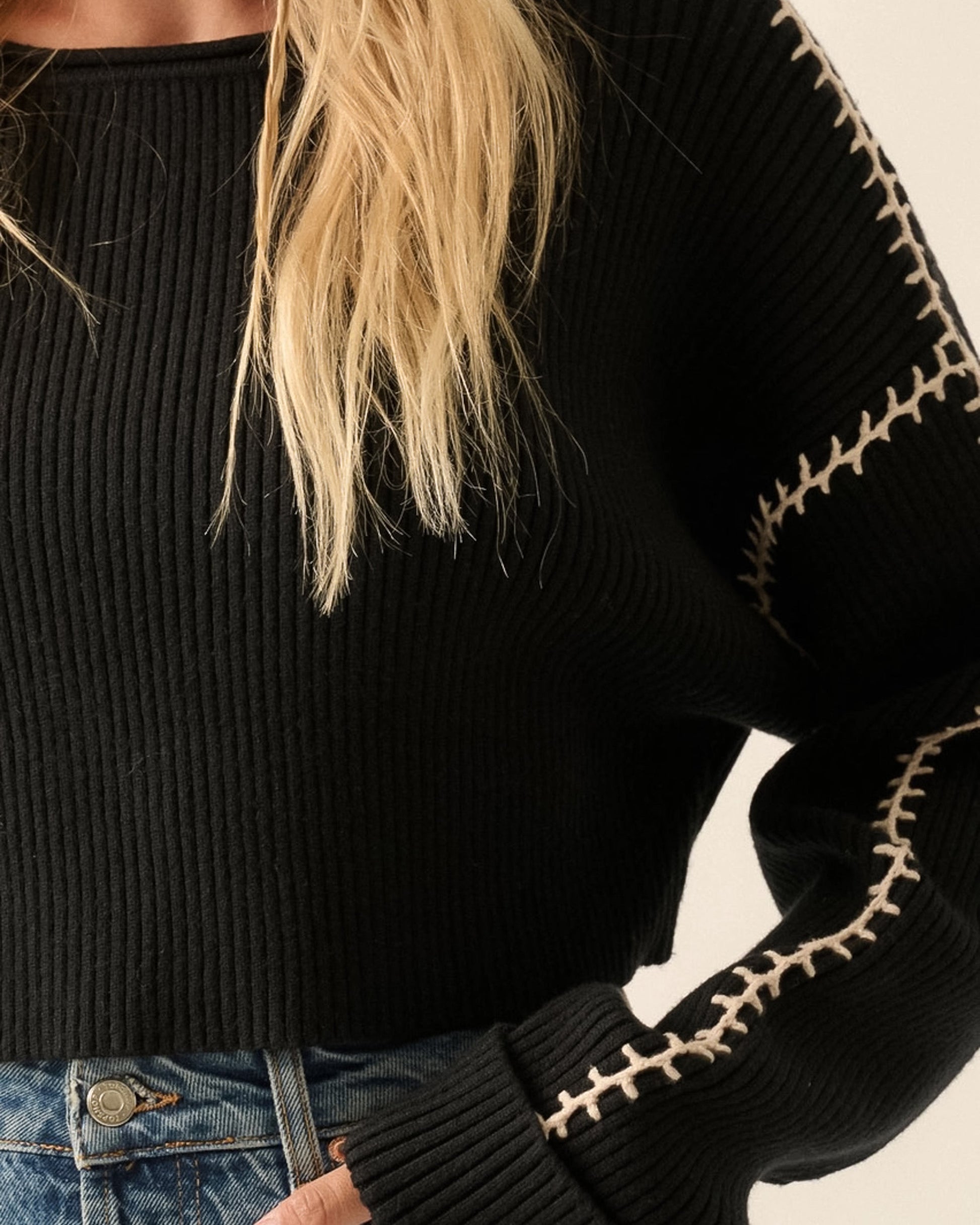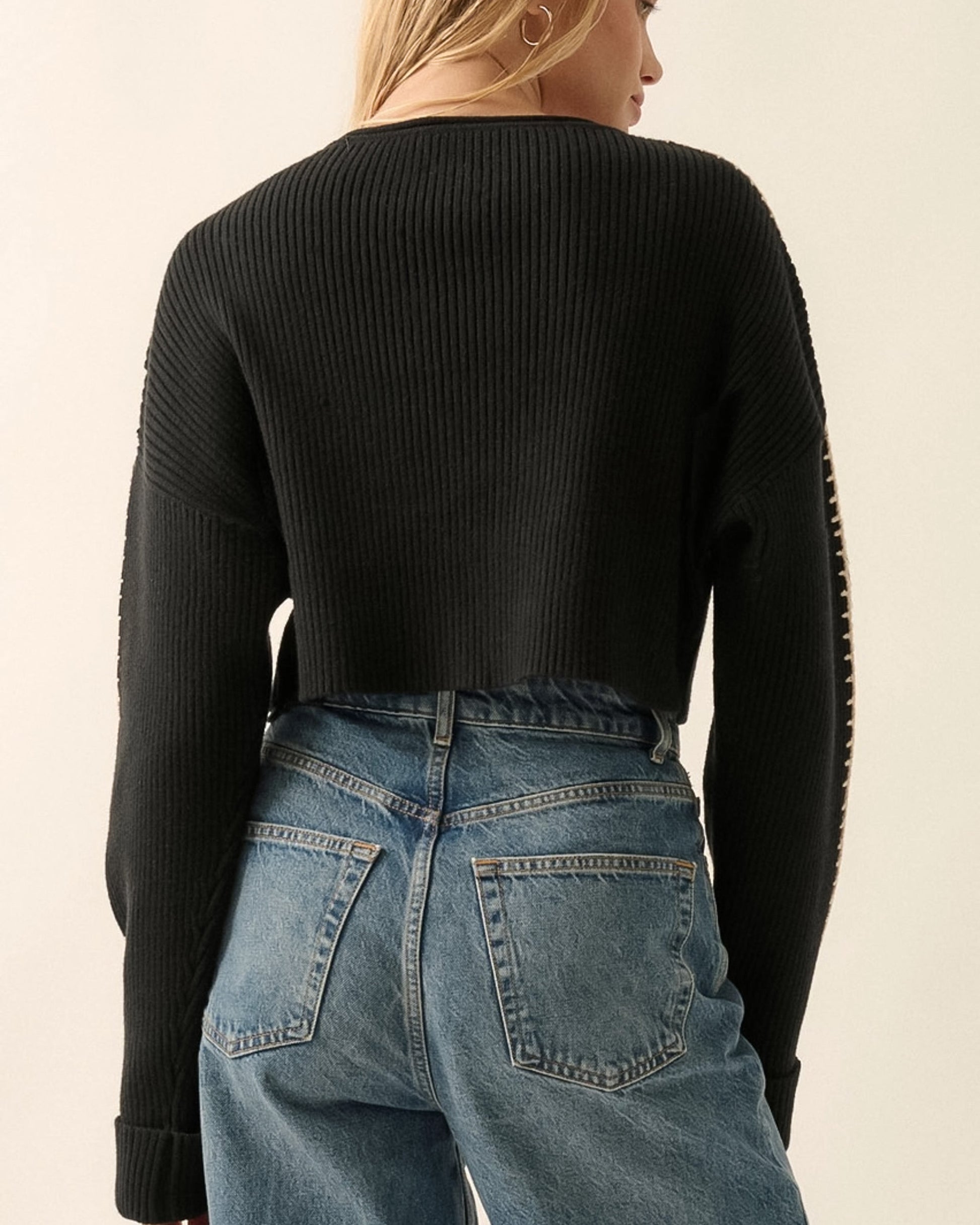 It's rounded neckline and perfectly cropped length create a flattering silhouette that's as easy to style as it is to wear. The long sleeves feature folded cuffs and dropped shoulders. Pair it with your go-to high waisted jeans or favorite fall skirt.